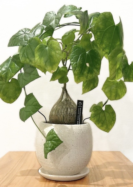 そこから伸びるハート型の葉のバランスが魅力です。